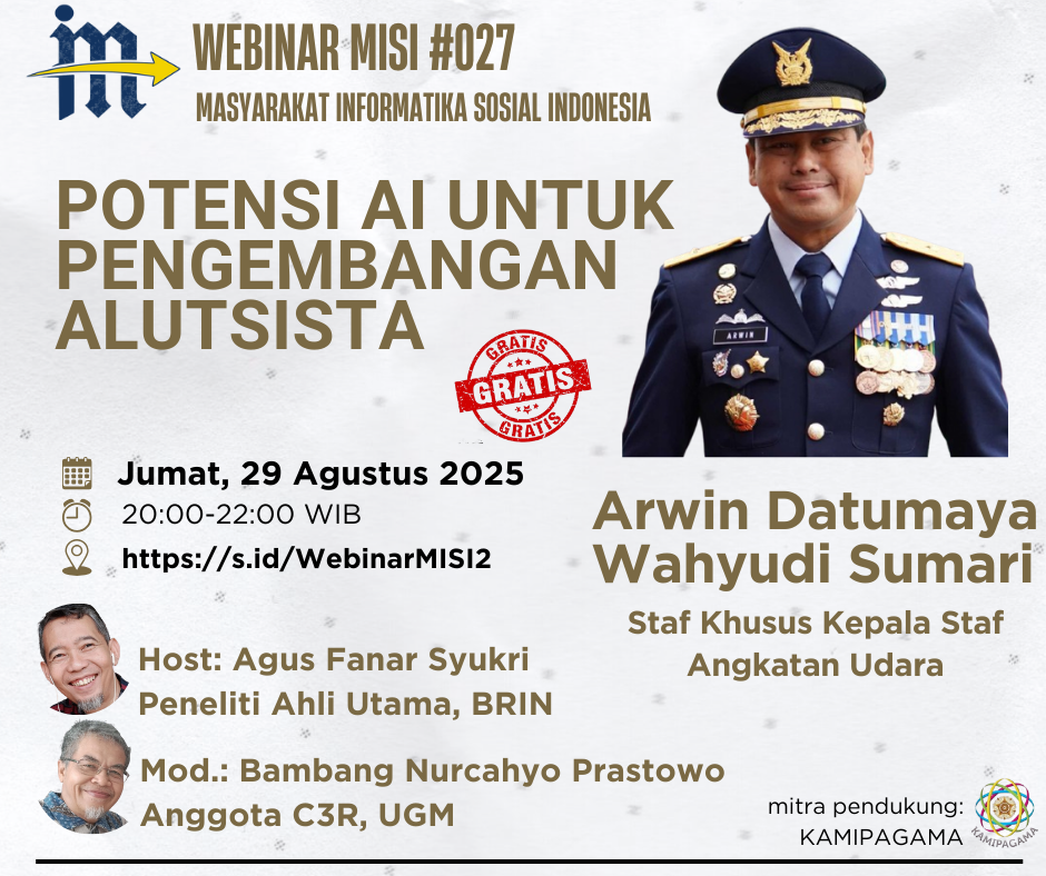 Host dan Moderator Webinar #026 Masyarakat Informatika Sosial Indonesia (MISI), mengundang teman-teman semua untuk menghadiri diskusi on-line: