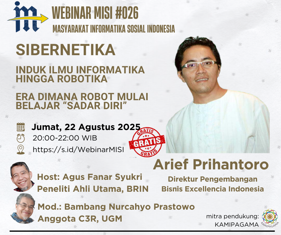Host dan Moderator Webinar #026 Masyarakat Informatika Sosial Indonesia (MISI), mengundang teman-teman semua untuk menghadiri diskusi on-line: