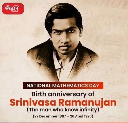 Salah satu genius dunia adalah Srinivasa Ramanujan (1887–1920). Tanggal 22 Desember adalah hari ulang tahunnya yg diperingati di India sebagai Hari Matematika Nasional. Ia adalah salah satu genius matematika paling luar biasa dalam sejarah. Ia dikenal sebagai “The Man Who Knew Infinity”, karena kemampuannya yang intuitif dan mendalam dalam memahami angka dan pola matematika yang sangat kompleks, meskipun ia hampir tidak memiliki pelatihan formal di bidang tersebut.
