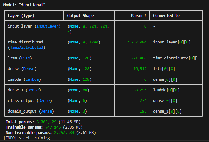 Gambar tabel berikut ini contoh arsitektur sederhana dari sebuah model AI Computer Vision. Dia memiliki parameter (weight+bias) bawaan arsitektur sebanyak 3 juta (sesuai dataset awal yang diberikan), namun yang dilatih hanya 750 ribuan. Yang 2,25 juta di-freeze. Sehingga yang akan berkembang lebih baik selama proses pelatihan adalah parameter yang berjumlah 750 ribuan. Sementara yg 2,25 juta parameter tidak mengalami perubahan (perkembangan) setelah proses pelatihan berakhir. Dari yang 750 parameter, ada parameter yang berkembang lebih baik dan ada yang semakin lemah, karena bisa jadi sejak dari proses desain arsitektur secara bawaan model tersebut keliru dalam pre processing atau kurang akurat dalam menentukan jenis/nilai parameternya.